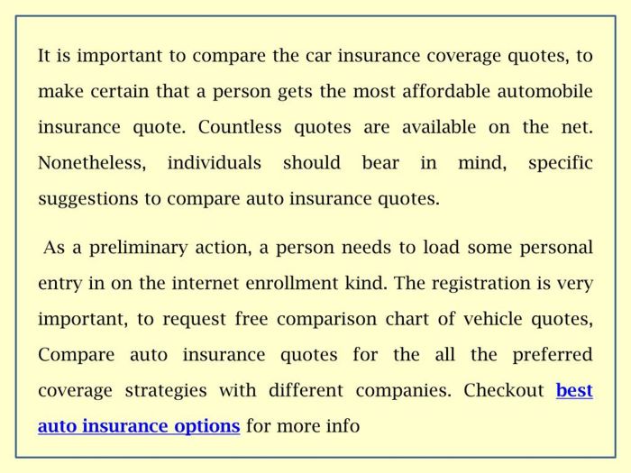 In conclusion, mastering the art of comparing auto policy quotes effectively in the USA is essential for making informed decisions about your insurance coverage. By following the steps Artikeld in this guide, you can confidently navigate the complexities of auto insurance and secure the best policy for your needs.
